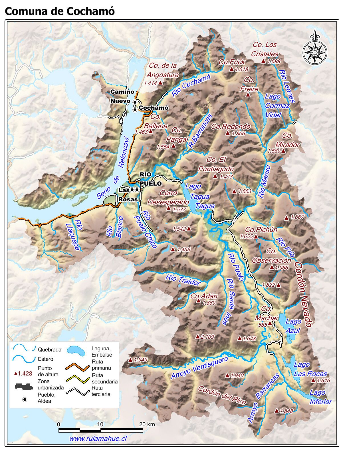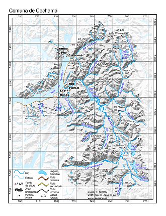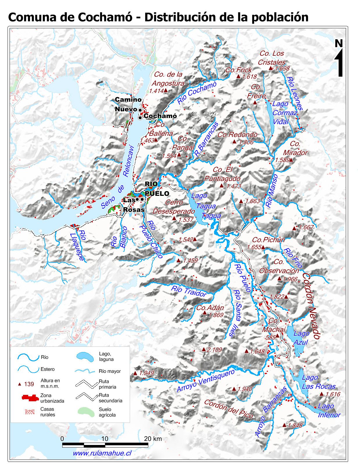 Mapa que muestra la ubicación y expansión de las zonas urbanas y la distribución de las casas rurales.