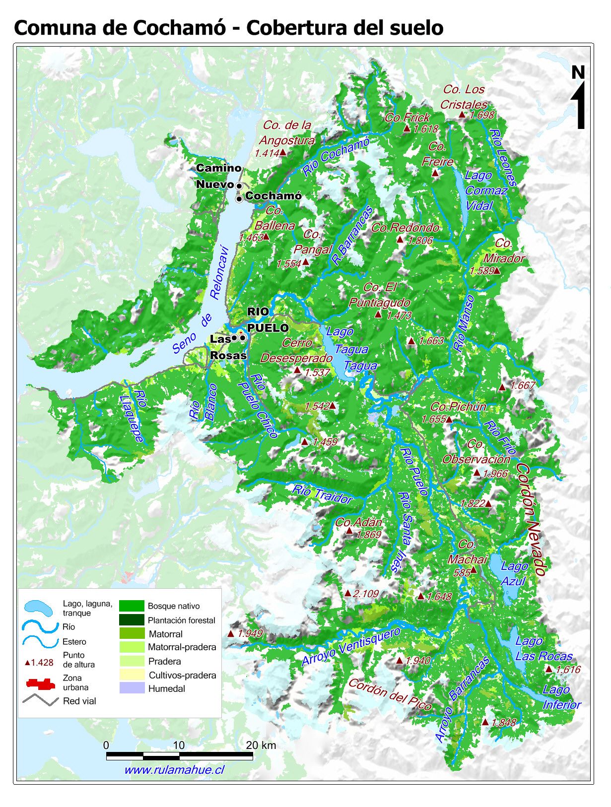 Mapa de la cobertura del suelo según el Catastro de Recursos Vegetacionales del año 2018 (fuente: sit.conaf.cl).