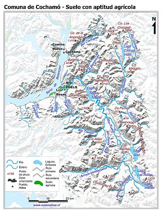 Mapa de la distribución de los suelos con aptitud agrícola según CIREN.