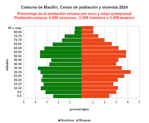 Porcentaje de la población urbana por sexo y edad quinquenal.