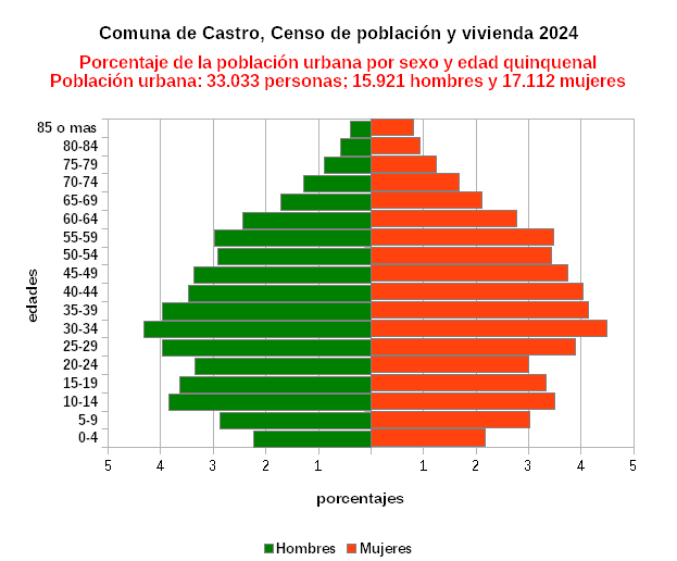 Porcentaje de la población urbana por sexo y edad quinquenal.
