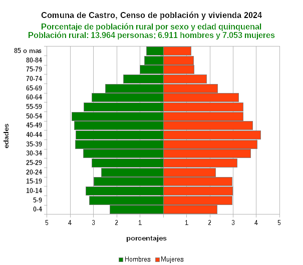 Porcentaje de la población rural por sexo y edad quinquenal.