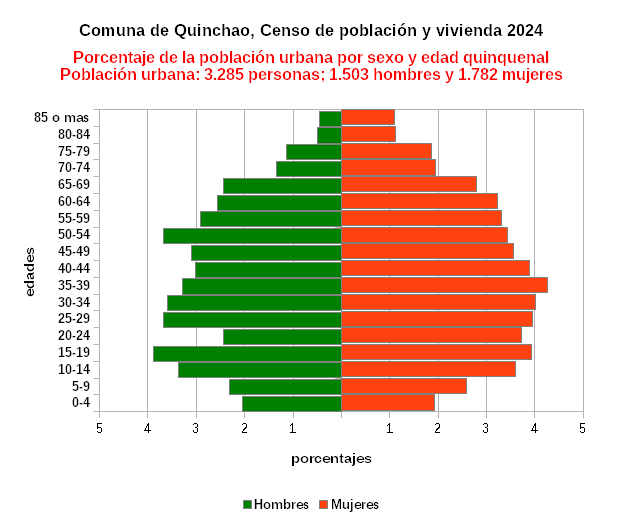 Porcentaje de la población urbana por sexo y edad quinquenal.
