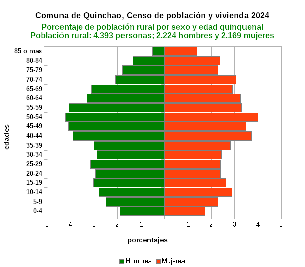 Porcentaje de la población rural por sexo y edad quinquenal.