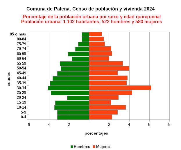 Porcentaje de la población urbana por sexo y edad quinquenal.