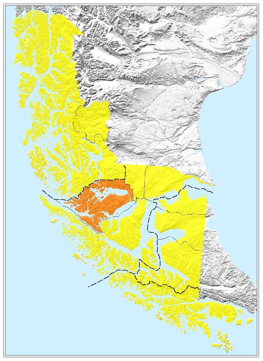 Mapa de la cobertura del suelo por unidad del relieve según el Catastro de Cobertura del Suelo del año 2005 (fuente: sit.conaf.cl)