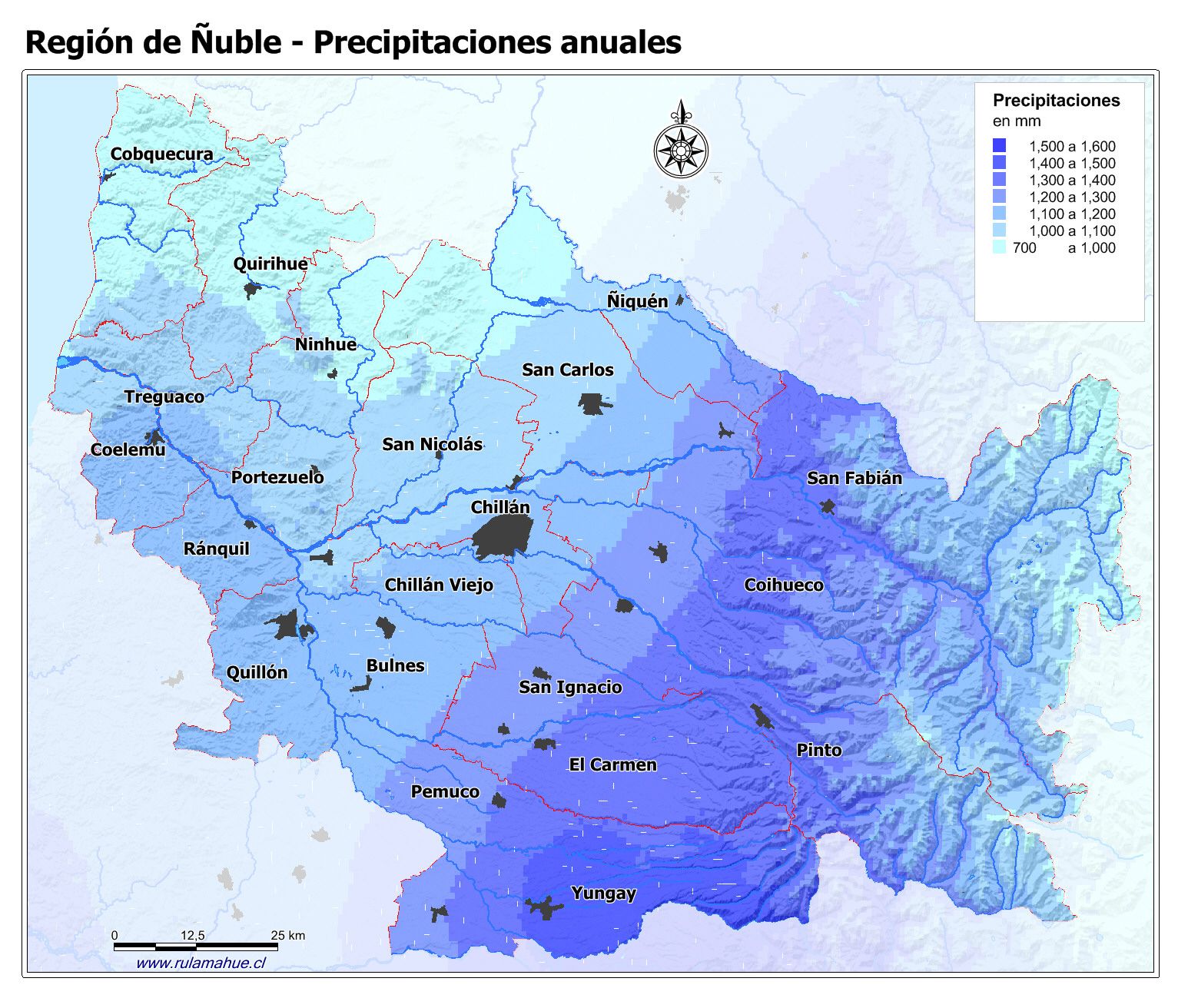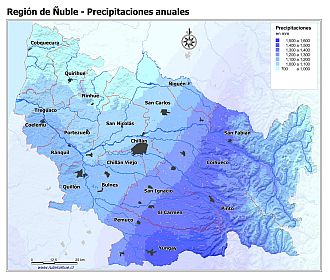 Mapa de la distribución de las precipitaciones anuales con datos del sitio web Worldclim.