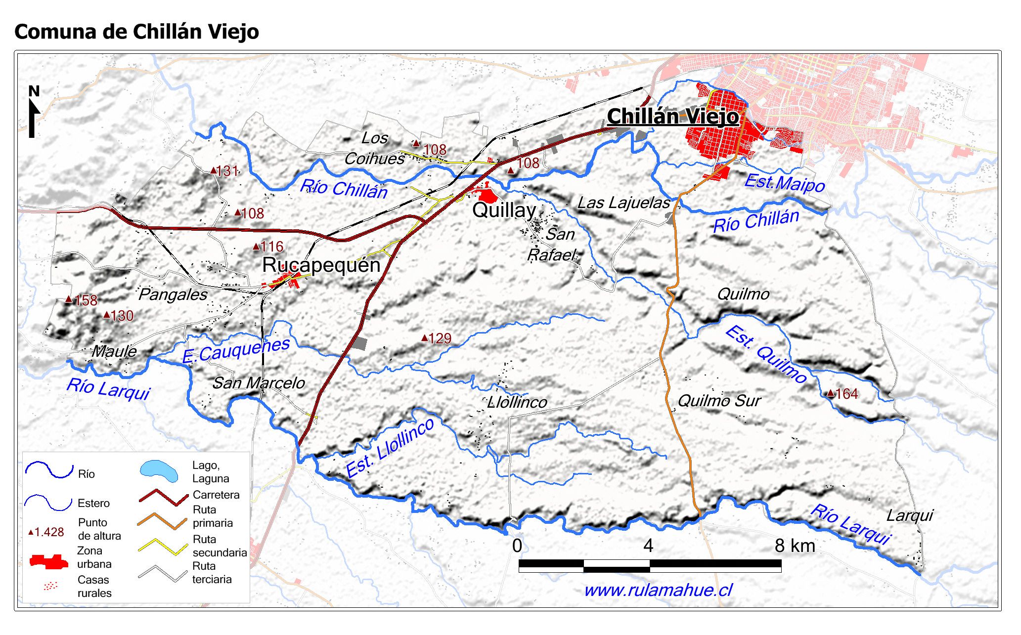 Mapa base de la Comuna con fondo coloreado.