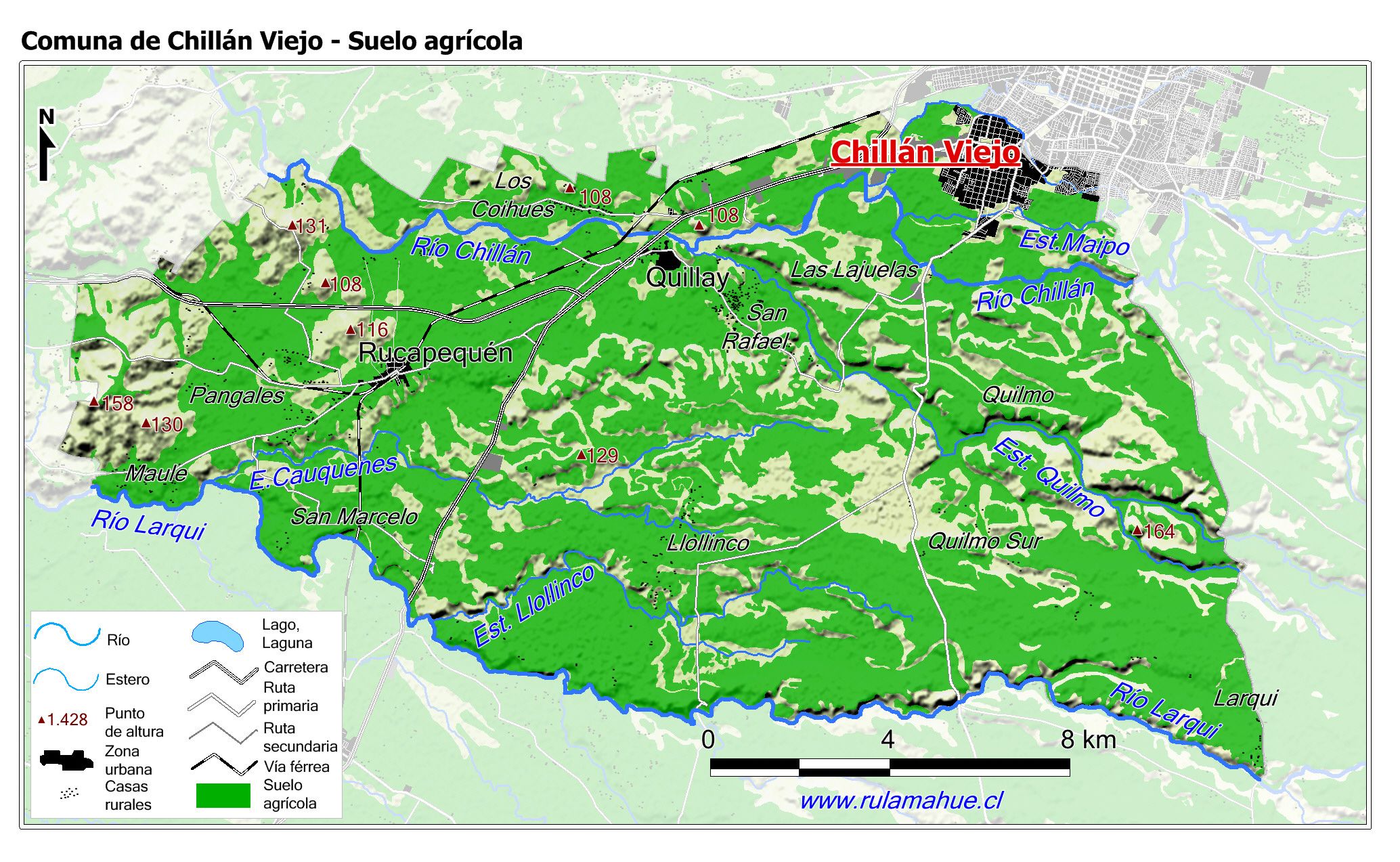 Mapa de la distribución de los suelos con aptitud agrícola según la información proporcionada por CIREN.