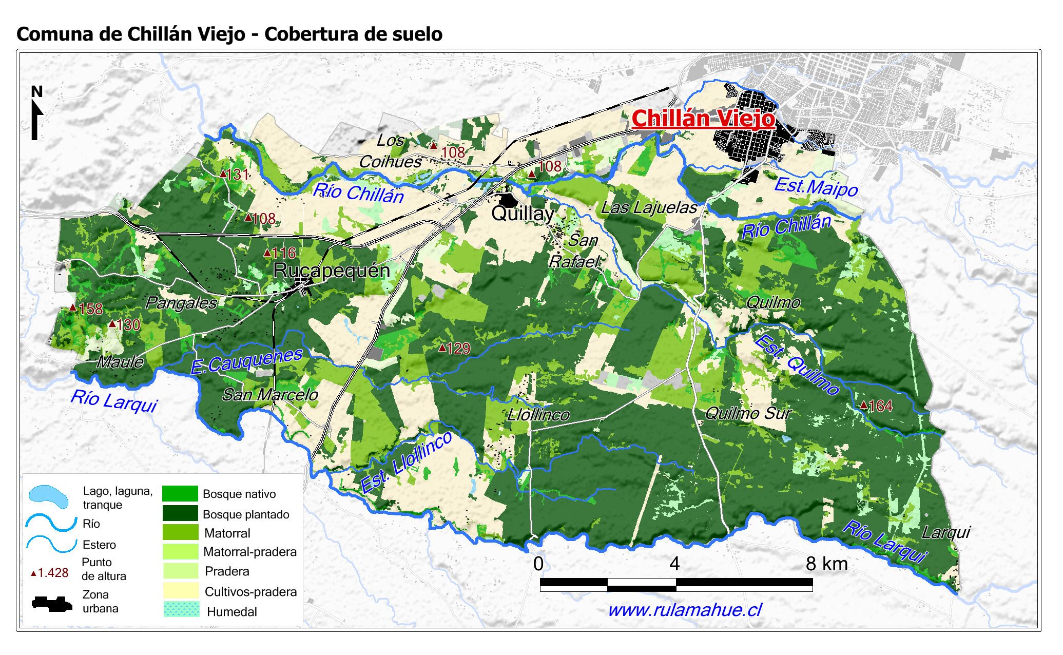Mapa de la cobertura del suelo por unidad del relieve según el Catastro de Cobertura del Suelo del año 2015 (fuente: sit.conaf.cl)