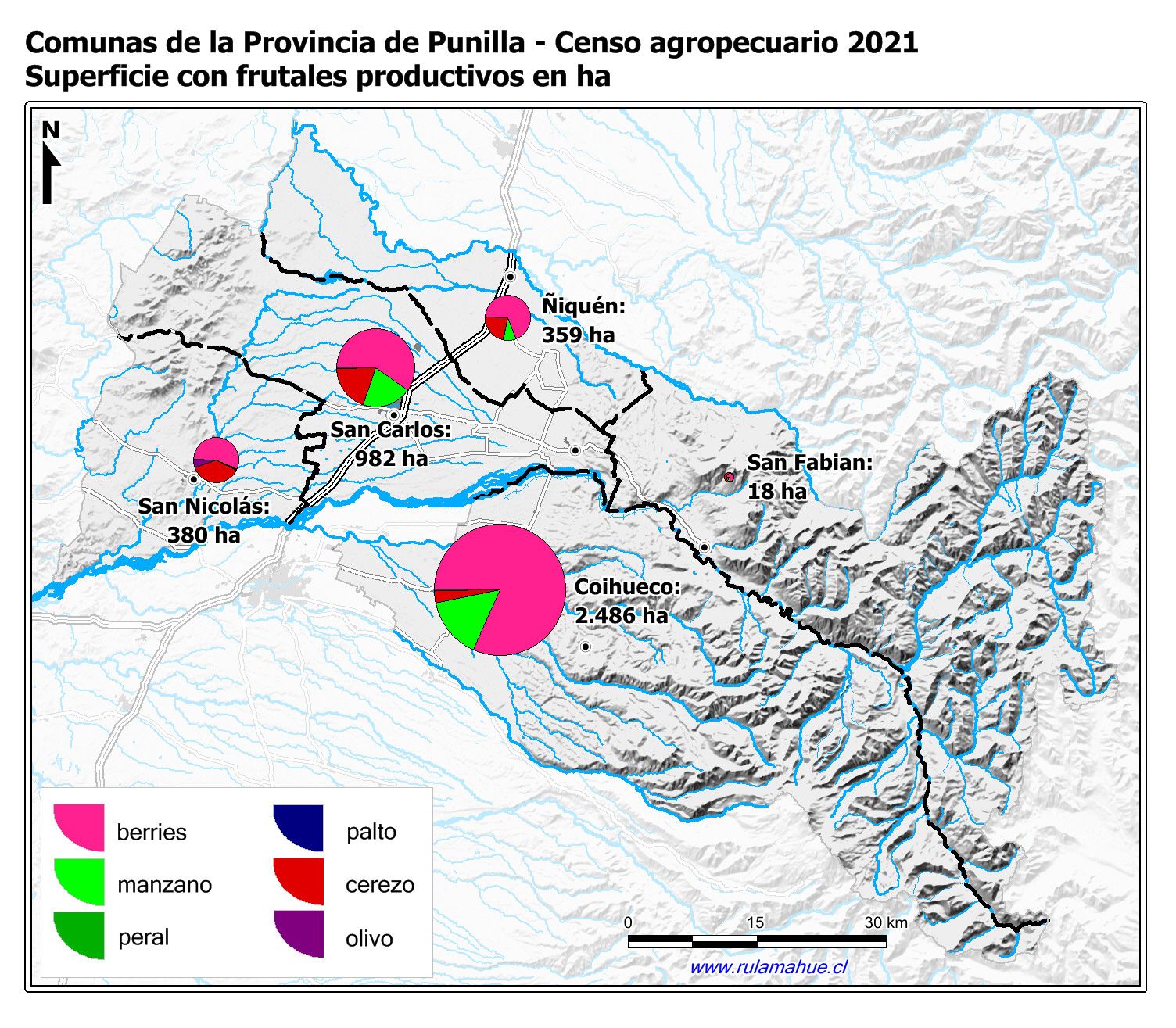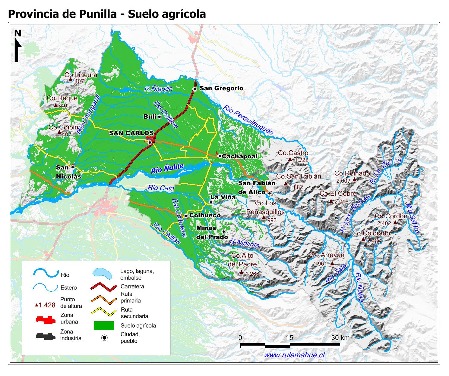 Mapa de la distribución de los suelos con aptitud agrícola según la información proporcionada por CIREN.